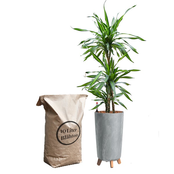 Das Set enthält die Pflanze, ein Pflanzgefäß in Betonoptik (44 cm), Blähton, einen Wasserstandsanzeiger sowie Dünger – so gelingt die Einrichtung im Handumdrehen. In Hydrokultur gepflanzt, zeigt dir der Wasserstandsanzeiger jederzeit, wann gegossen werden muss. Durch das Wasserdepot im Topf ist die Versorgung dauerhaft gesichert.
