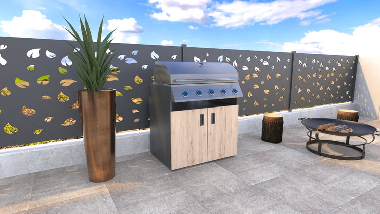 Grillelement mit Grill, Holzdekor - rustikale Eiche, 900 x 634 mm, Höhe 1200 mm - Pulverbeschichtete Edelstahl-Outdoorküche Element