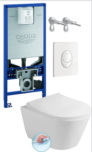 Grohe SLX+ Drückerplatte+ Befestigung + Kreabad Wand Wc Randlos 314 + Soft Close Sitz