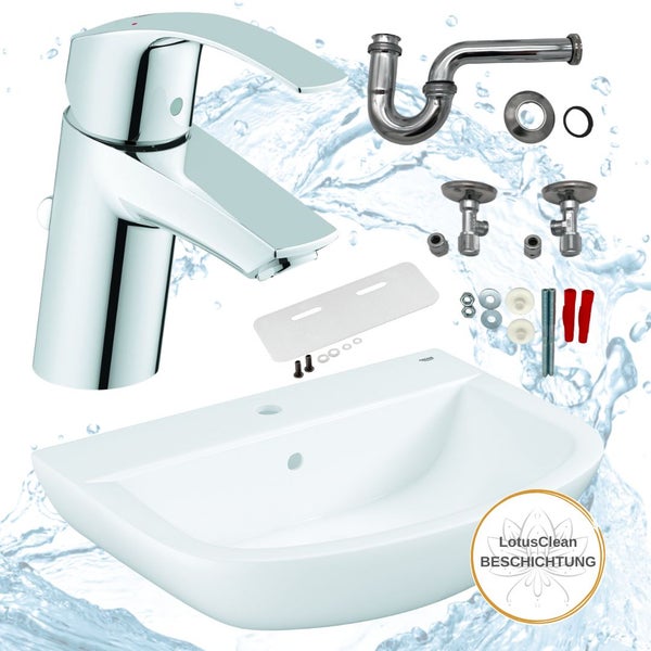 Grohe Waschtisch-Komplettset 60 cm mit Eurosmart Armatur, Schallschutz und LotusClean Beschichtung