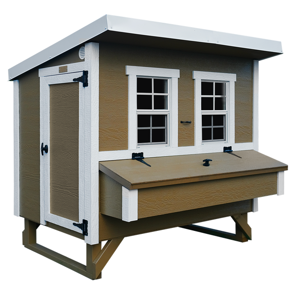 - Im Lieferumfang enthalten2 Schiebefenster aus gehärtetem Glas; 5 Nistkästen, 2 Belüftungsöffnungen, 2 Abnehmbare Sitzstangen, 1-Personaltür, 1 Hühnertür mit behandelter Holzrampe