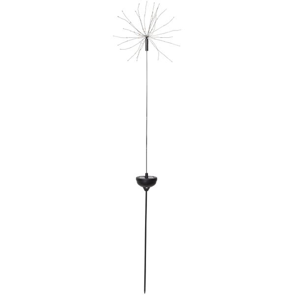 - Die Solar-Wegleuchte besteht aus einem schwarzen Stab mit Solarpanel, an dessen Spitze sich der Leuchtenkopf in Feuerwerks-Optik befindet
