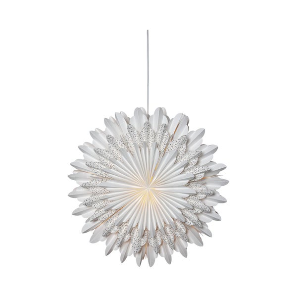 Großer Papierstern ,Snow', 3-lagiges gefächertes Papier, gold gepunktet, weiß, Ø 50cm
