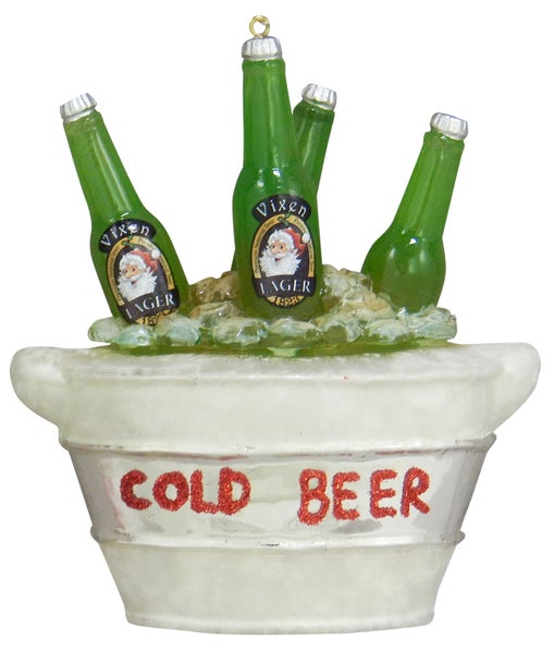 Grün/Silber 9cm Bierkühler, Glasornament, mundgeblasen und handekoriert, 1 Stck., Weihnachtsbaumkugeln, Christbaumschmuck, Weihnachtsbaumanhänger
