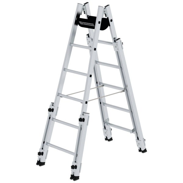 Hinweis: Diesen Artikel erhalten Sie als Speditionslieferung direkt vom Hersteller. Bitte geben Sie uns unbedingt eine Telefonnummer für die Spedition an. Des Weiteren kann dieser Artikel NUR innerhalb Deutschlands versendet werden. (This item can ONLY be shipped within Germany) Sprossen-Stehleiter aus Aluminium Stabile Rechteckrohr-Holme Beidseitig geriffelte Vierkantsprossen 30 x 30 mm 4-fach gebördelte Sprossen- / Holmverbindung Konische Holmführung für sicheren Stand Massive, verzinkte Stahlscharniere mit Verschraubung nivello®-Leiterschuhe mit patentierter 2-Achsen-Neigungstechnik Kunststoff-Endkappen am oberen Holmende Spreizsicherung mit zwei hochfesten Perlongurten Transportsicherungslaschen Vier Holmverlängerungen mit solider Schiebeführung, stufenlos per ergonomischem Sterngriff verstellbar