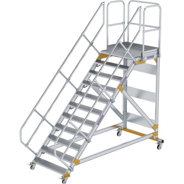 Günzburger Steigtechnik Plattformtreppe 45° fahrbar Stufenbreite 1 m 11 Stufen Aluminium geriffelt - 600811