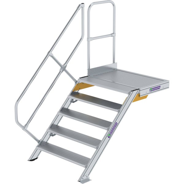 Günzburger Steigtechnik Treppe mit Plattform 45° Stufenbreite 1.000 mm 5 Stufen Aluminium geriffelt - 600465