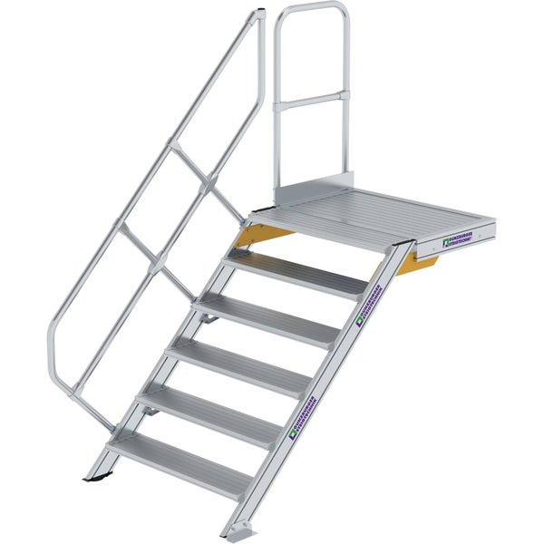Günzburger Steigtechnik Treppe mit Plattform 45° Stufenbreite 1.000 mm 6 Stufen Aluminium geriffelt - 600466