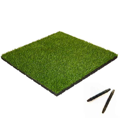 Diese Gummifliese mit Kunstrasendeckschicht ist ideal, wenn Sie Ihrem Garten ein frisches und natürliches Aussehen verleihen möchten, aber keine Zeit für eine ausgiebige Rasenpflege haben. Die Fliese kann auch in Turnhallen verwendet werden, um ihr das Aussehen eines Rasens zu verleihen. Durch die Schlitz-Zapfen-Verbindung können die Fliesen fest miteinander verbunden werden. Eine Verklebung ist daher nicht erforderlich.