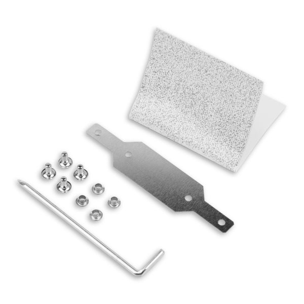 - Im Lieferumfang enthalten1 x Edelstahl-Verbindungsstreifen | 1 x Spezial- Klebestreifen | 1 x Montagesatz (Nieten, Anleitung und Kleinteile)