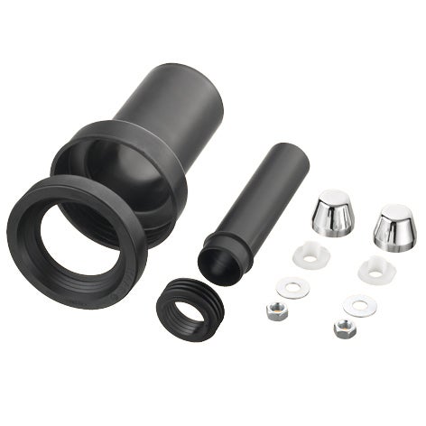 Im Lieferumfang enthalten: Spülrohrverbinder 45x185 mm mit Gummilippendichtung und WC-Anschlussstutzen mit Gummistülpdichtung, inkl. Abdeckkappen, Exzenterscheiben, Unterlegscheiben und Muttern M12 und Montageanleitung