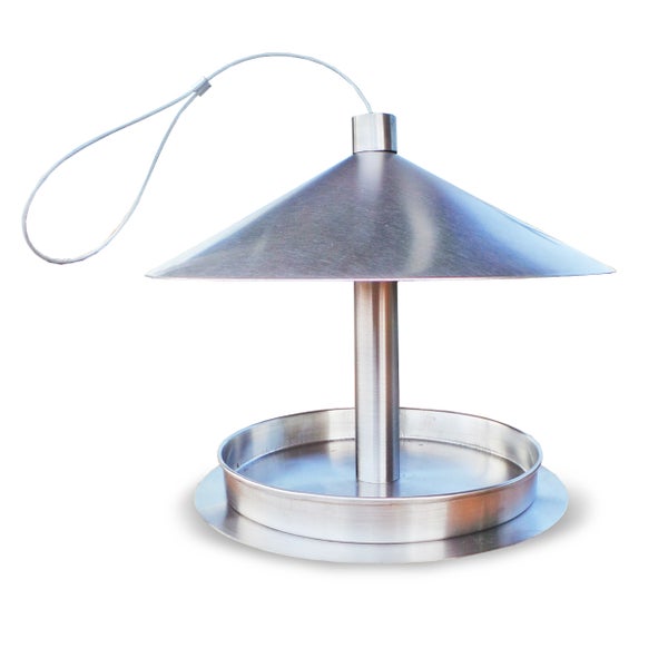 Edle Edelstahl-Futterstation für Wildvögel - mit robuster Drahtkordel zum Hängen