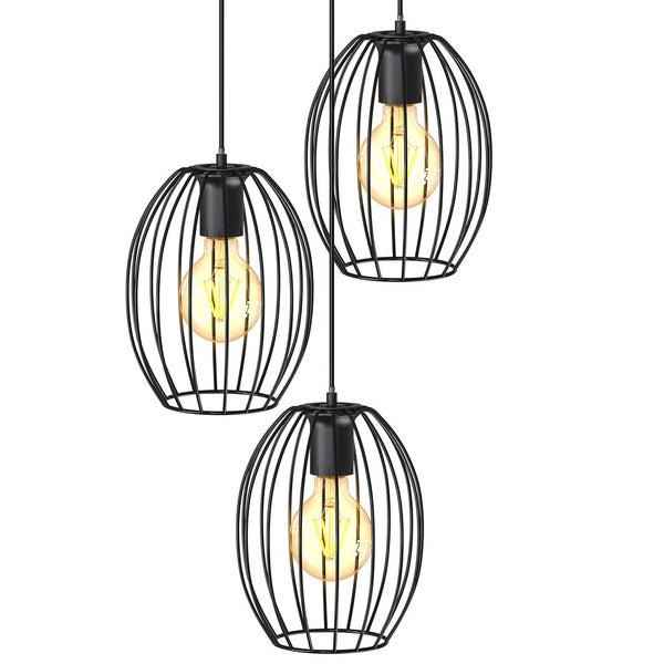 Hängelampe - E27 Fassung, retro, 3-flammig, Drahtgestell, schwarz