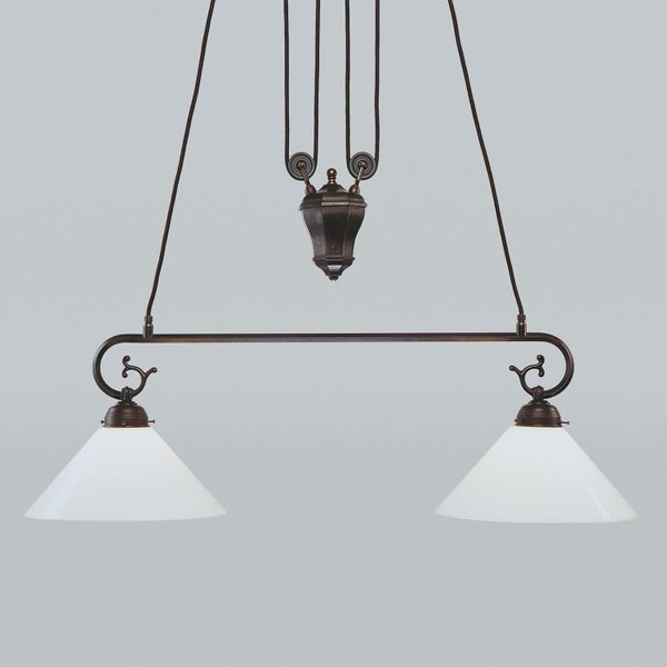 Hängelampe Glas Messing 90 cm breit in Antik Weiß E27 2-flammig Jugendstil Hängeleuchte