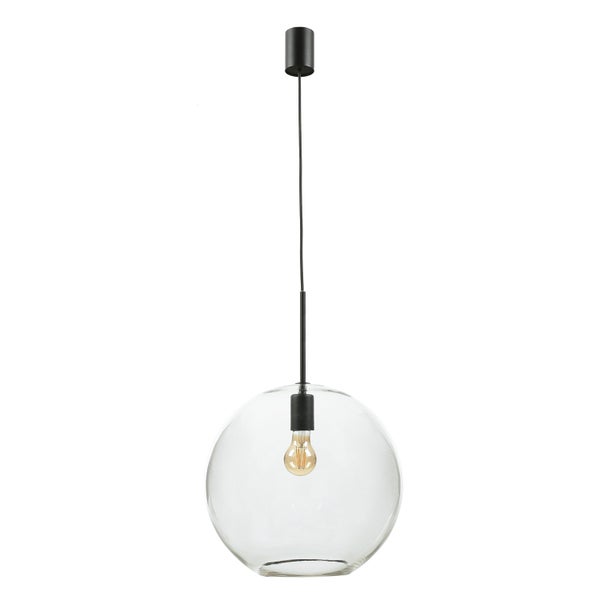 Hängelampe Kugelschirm rund D: 36 cm H: max. 160 cm Metall Glas E27 Schwarz Retro Hängeleuchte