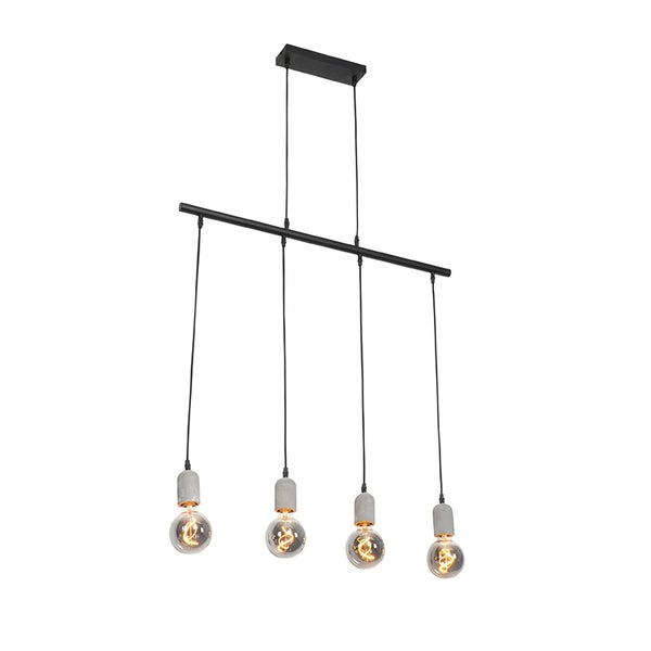 Hängelampe schwarz mit Beton 4-flammig - Pedra