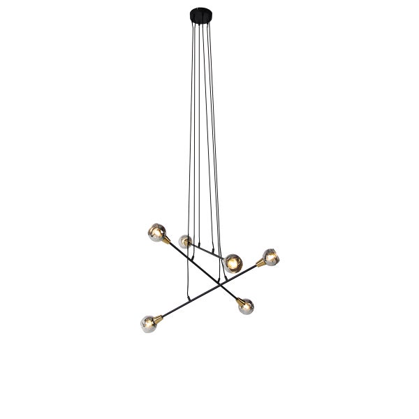 Hängelampe schwarz mit Messing und Rauchglas 6 Lichter - Vidro