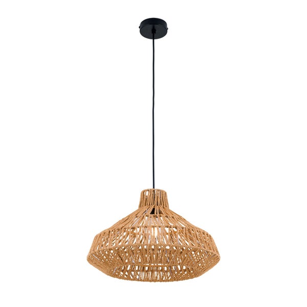 Die BASKET Hängeleuchte zeichnet sich durch ihr weißes Schirmgestell aus, das mit Hanfkordeln umwickelt ist. Diese raffinierte Kombination verleiht der Leuchte einen natürlichen und gleichzeitig modernen Look. Die schwarze matte Abhängung aus robustem Metall komplettiert das Design und sorgt für eine stabile Befestigung.