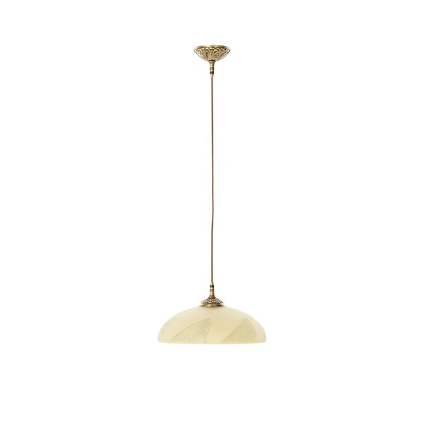 Hängeleuchte Echt-Messing Glas 30 cm breit H: max. 105,5 cm E27 in Bronze Antik Pastell-Orange Jugendstil Hängelampe Pendelleuchte