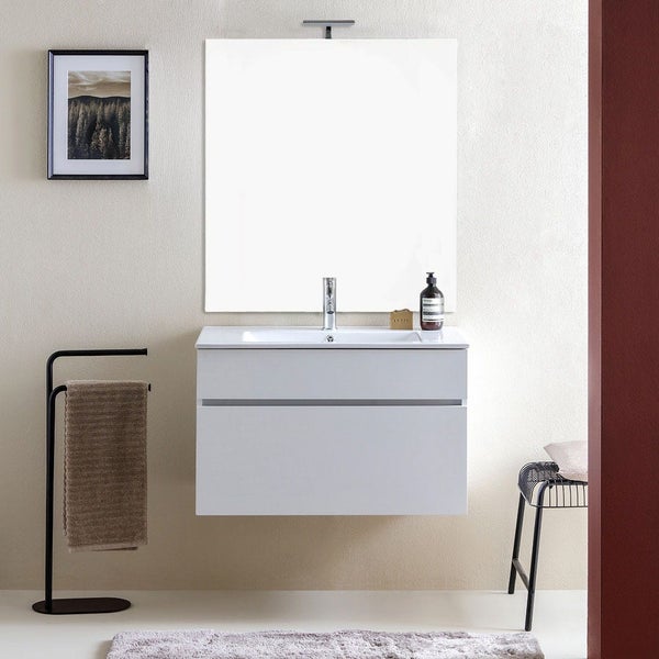 Hängendes Badezimmermöbel 80cm Weiß mit Waschbecken und Spiegel 80x110 | Sole