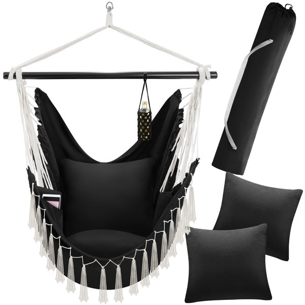 Hängesessel tectake Malika inkl. Tragetasche, ca. 100 x 150 x 150 cm extra dicke Sitz- und Rückenkissen schwarz