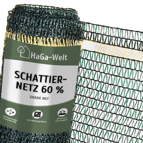 HaGa® Schattiernetz – Flexibler Sonnenschutz für Garten, Gewächshaus & Co.Sind Sie auf der Suche nach einem zuverlässigen und langlebigen Schutz vor starker Sonne? Unser HaGa® Schattiernetz vereint effektive Lichtregulierung, UV-Schutz und vielseitige Einsatzmöglichkeiten. Egal ob im Gewächshaus, im Frühbeet oder auf Ihrer Terrasse – mit diesem Netz schaffen Sie optimale Bedingungen für gesundes Pflanzenwachstum und schützen Ihre Außenbereiche vor übermäßiger Hitze.Vielseitig einsatzbereit für optimalen PflanzenschutzIn heißen Sommermonaten kann intensive Sonneneinstrahlung vor allem in Gewächshäusern oder unter Folientunneln zu Stress bei Ihren Pflanzen führen. Das UV-stabilisierte Schattiernetz nach Maß reduziert die direkte Sonneneinstrahlung und beugt Überhitzung vor. So erhalten Ihre Pflanzen ausreichend diffuses Licht, ohne Schaden durch starke UV-Strahlen zu nehmen. Nutzen Sie das Netz auch als Sichtschutz, Windschutz oder Zaunverkleidung – ideal für Terrassen, Teichanlagen oder Poolbereiche, um Privatsphäre zu schaffen und Laub fernzuhalten.Hochwertiges Material für langanhaltende NutzungUnser Schattiernetz besteht zu 100 % aus Polypropylen und bietet höchste Strapazierfähigkeit. Es ist verrottungsfest und widersteht Temperaturen von -40 °C bis +80 °C. Damit bleibt Ihr Sonnenschutz in unterschiedlichsten Klimazonen über Jahre hinweg funktionsfähig und behält seine Schutzwirkung.Jetzt das HaGa® Schattiernetz bestellen und Ihre Pflanzen sowie Außenbereiche wirkungsvoll vor Sonne und UV-Strahlung schützen!Details: