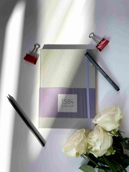 Das Notizbuch 1584 by Hahnemühle, erhältlich in den Farben seegrün, flieder und peach, ist ein eleganter täglicher Begleiter. Es bezaubert durch puristisches und gleichzeitig feminines Design und überzeugt zudem durch feine Details.Drei farblich auf die Ausführung abgestimmte Lesezeichenbänder lassen Termine und Notizen schnell auffinden, ein Gummiband verschließt das Buch fest, um Gedanken, kleine Zettel und Bilder wie in einer Schatulle sicher aufzubewahren.1584 by Hahnemühle bietet mit 200 Seiten genügend Raum, um Terminplanungen und Erinnerungen im eigenen Stil und eigener Schrift zu einem ganz persönlichen Accessoire werden zu lassen, das einem vergangene Momente wieder vor Augen führt und das alltägliche Chaos zähmen lässt. 160 weiße Seiten feinstes Schreibpapier umschließen einen 40 seitigen farbig abgestimmten Kern. Das oft für selbstverständlich gehaltene wertvolle Produkt Papier gleitet angenehm durch die Finger und ist für analoge Schriftliebhaber ein absolutes Muss. Der haptische, strapazierfähige Umschlag des Notizbuchs mit einer edlen Prägung auf der Rückseite schützt nicht nur den Inhalt, sondern lässt das Buch zu einem Schmuckstück werden, mit dem man sich gern umgibt.Im praktischen A5 Format passt es in jede Handtasche, so dass Gedanken und Erinnerungen zu jeder Zeit festgehalten werden können.