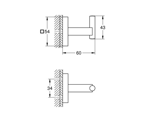 Die Befestigungsmöglichkeiten sind besonders flexibel: Du kannst den Haken entweder mit den mitgelieferten Schrauben und Dübeln montieren oder, ganz ohne Bohren, mit dem separat erhältlichen GROHE QuickGlue ankleben. Beide Methoden ermöglichen eine stabile und dauerhafte Anbringung an der Wand. Die verdeckte Befestigung sorgt für eine schlichte und elegante Optik.