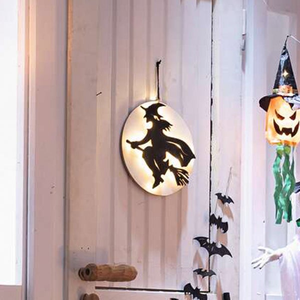 HALLOWEEN | LED-Hänger Hexenflug, MDF, HOLZ, JUTE, 34 x 3 x 30 cm Gh 42 cm