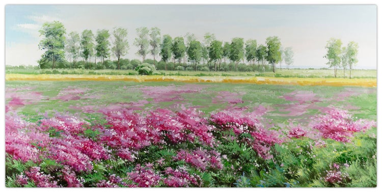 Das handgemalte Acrylbild 'Der Sommer meines Lebens' verschafft Ihnen jeden Tag ein bisschen Urlaub vom Alltag. Tauchen Sie in die malerische Landschaft aus grünen und pinken Farben ein und genießen Sie den Tag! Lassen Sie Ihren Blick über die grüne Blumenwiese schweifen und entdecken Sie jeden Tag neue Details in diesem handgemalten Gemälde. Ihr handgemaltes Gemälde erhalten Sie in der Größe 120x60cm. Anders als bei minderwertigen Drucken auf Leinwand können Sie auf unseren Unikaten jeden Pinselstrich fühlen.