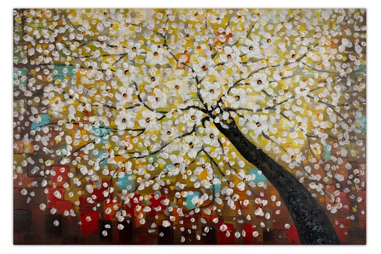 Zauber im Baumwipfel' verleiht Ihren Räumen eine einmalige Atmosphäre. Perfekt um Ihr Wohnzimmer in Szene zu setzen oder in Ihrem Büro einen extravaganten Blickfang zu integrieren - ein Ensemble aus den verschiedensten Formen mit gelben Akzenten für die Ewigkeit. Dementsprechend erfreuen sich auch Ihre Gäste an Ihrem vorzüglichen Geschmack. Ihr handgemaltes Gemälde erhalten Sie in der Größe 120x80cm. Anders als bei minderwertigen Drucken auf Leinwand können Sie auf unseren Unikaten jeden Pinselstrich fühlen.