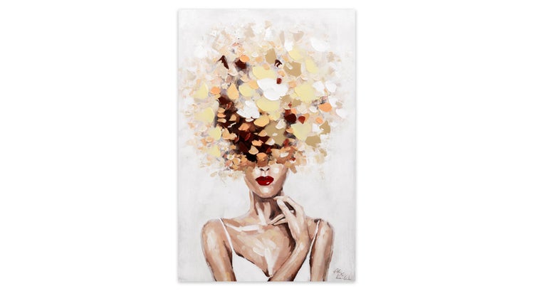 Die handgemalte Dame des Acrylgemäldes 'Autumn's Muse' ist die Muse des Herbstes: Ihr gelbes Haar aus pastosem Farbauftrag inspiriert den Herbst zu den warmen Farben der Blätter und ihr anmutiger Ausdruck zu der kühlenden Natur des Windes. In Ihrem Wohnzimmer beeindruckt das Leinwandbild mit zugleich edler und heimeliger Ausstrahlung. Ihr handgemaltes Gemälde erhalten Sie in der Größe 60x90cm. Anders als bei minderwertigen Drucken auf Leinwand können Sie auf unseren Unikaten jeden Pinselstrich fühlen.