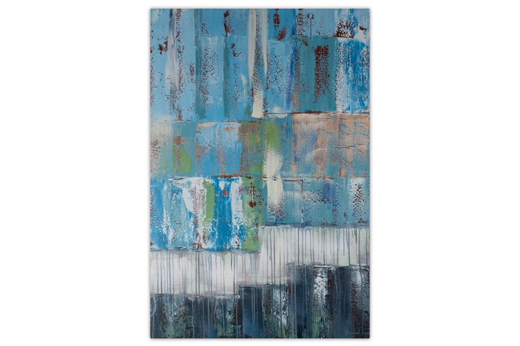 Das handgemalte Acrylbild 'Tiefenentspannung' überwältigt mit der Ruhe, die es ausstrahlt. Verschiedenste Nuancen der Farbe Blau vereinen sich in diesem Kunstwerk. Für Akzente sorgen das Beige und Braun, welche sich zwischen den blauen Vierecken einreihen. Dieses Gemälde eignet sich ausgezeichnet als Ruhepol in Ihrem Büro oder Ihrer Praxis. Ihr handgemaltes Gemälde erhalten Sie in der Größe 80x120cm. Anders als bei minderwertigen Drucken auf Leinwand können Sie auf unseren Unikaten jeden Pinselstrich fühlen.