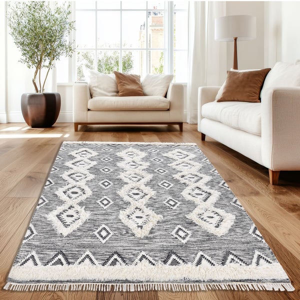 Handgewebter Edler Kelim aus Wolle Schwarz Weiß 170x240 cm