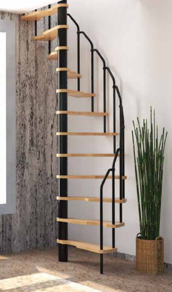 HandyStairs platzsparende Wendeltreppe „Radius“ – 120 x 60 cm – 299 cm hoch – 12 Buchenstufen – Grau