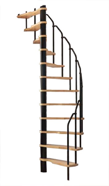 HandyStairs platzsparende Wendeltreppe „Radius“ – 120x60 cm – 299 cm hoch – 12 Buchenstufen – Schwarz