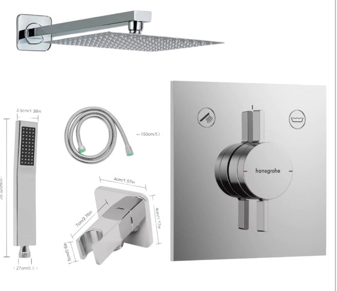 Hansgrohe Duo Turn E Chrom (Für Ibox2 ) + Kreabad Handbrause + Wandhalter + Schlauchanschluss + Schlauch + Regendusche Kopfbrause 30x30 und Brausearm.