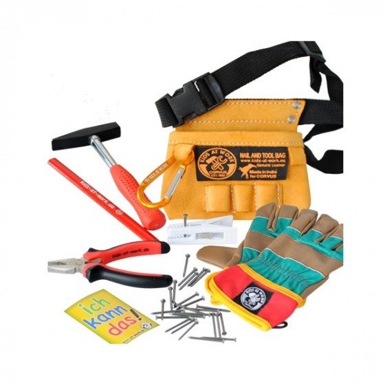 Kids At Work werkzeugsatz Junior Kunstleder/Stahl orange 7-teilig Kids At Work werkzeugsatz Mit diesem lustigen Werkzeugset kann Ihr Kind Kids At Workbei der Hausarbeit helfen. Sicherheit ist wichtig, also vergessen Sie nicht, die Schutzbrille aufzusetzen. Dieser Werkzeugsatz ist einfach zu speichern. Das Set enthält einen Hammer, eine Schutzbrille, einen Flachmeißel; einen Spitzmeißel; ein Lineal und Werkzeugaufhänger. Diese Werkzeuge werden speziell für Kinder hergestellt.