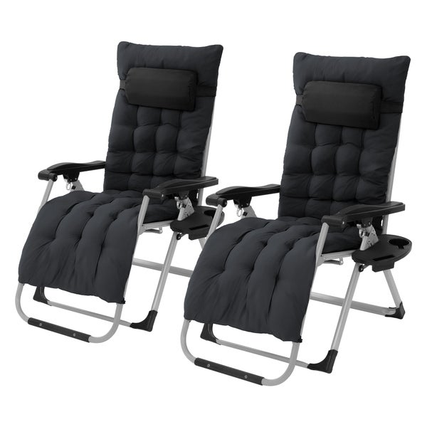 Hauki 2er Set Sonnenliege klappbar Schwarz, Liegestuhl mit Polster, Nackenkissen, Getränkehalter, Extra groß Gartenliege wetterfest, Zero Gravity Stuhl, Outdoor Relaxliege, Gartenstuhl mit Rückenlehne