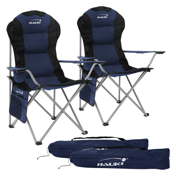 Hauki Campingstuhl 2er Set faltbar, Blau, Angelstuhl mit Getränkehalter & Tragetasche, Gartenstuhl klappbar, bis 150 kg, Übergroßer Klappstuhl mit Hochlehner, Gepolster Faltstuhl, Anglerstuhl tragbar