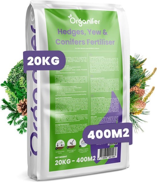 Hecken-, Eiben- & Koniferendünger All-In-One - 20 kg für 400 m2 - Organifer