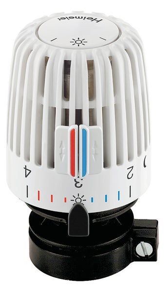 HEIMEIER Thermostat-Kopf, mit Direktanschluß an Thermostat-, Ventilunterteile anderer Fabrikate. Mit eingebautem Fühler und Sparclip. Skalenhaube weiß RAL 9016. Flüssigkeits-, gefüllter Thermostat. Stabiles Regelverhalten auch bei kleinen Auslegungsregeldifferenzen (<1 K). Entspr. EnEV bzw., DIN V 4701-10. Innere Begrenzung oder Blockierung im Sollwertbereich durch Einstellring. Äußere Begrenzung im, Sollwertbereich durch Sparclip. Sollwertbereich 6 bis 28 Grad C., Merkzahl 1-5. Frostschutzsicherung. Max. Fühlertemperatur: 50 Grad C.