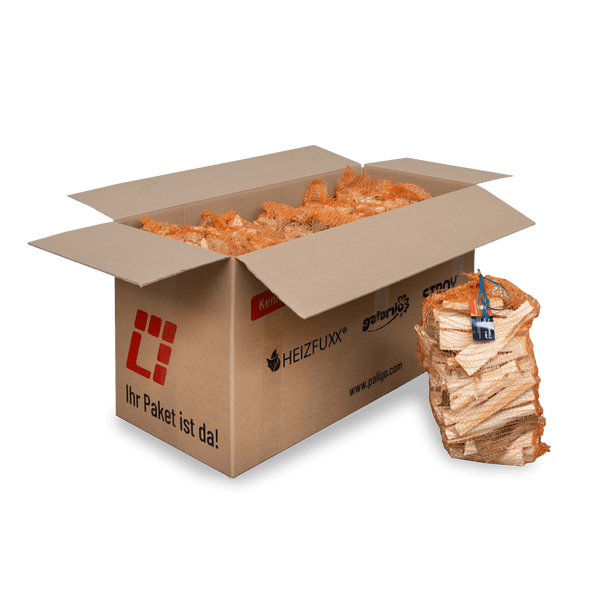 Unser HEIZFUXX® Anzündholz Blue aus Weichholz ist die perfekte Wahl zum Anfeuern Ihres Kamins. Weichholz hat im Vergleich zu Hartholz eine niedrigere Rohdichte, trocknet schneller, entzündet sich leicht und entwickelt schnell ein intensives Flammenbild. Weichholz brennt schnell und sehr heiß, jedoch kürzer als Hartholz. Daher ist Weichholz ideal als Kaminanzünder geeignet, während Hartholz für lange Brennintervalle und einen hohen Brennwert sorgt. Das Anzündholz aus Nadelholz erzeugt beim Verbrennen den typischen Waldduft. Aufgrund des hohen Harzanteils im Nadelholz besteht die Gefahr von Funkenflug. Daher sollten Sie unsere Anzündhölzer im Innenbereich ausschließlich in geschlossenen Kamin- oder Kachelöfen einsetzen. Das Brennverhalten von Nadelholz sorgt mit Knistern und Knacken außerdem für eine gemütliche Atmosphäre in Feuerschalen im Freien. Es lässt sich leicht aufstapeln und lagern. Achten Sie darauf, dass das Holz durch eine Überdachung vor direkter Sonneneinstrahlung oder extremer Nässe geschützt ist, um ein Faulen der Scheite zu verhindern. Die Verbrennung von feuchtem Holz ist aufgrund des hohen Schadstoffgehalts und der dabei freigesetzten Gifte gesundheitsgefährdend. In vielen Regionen ist die Verbrennung von Brennholz gesetzlich geregelt oder eingeschränkt. Wir empfehlen Ihnen, unsere HEIZFUXX® Anzündhölzer zum Anzünden eines Kaminfeuers zu verwenden und anschließend Hartholzscheite nachzulegen, um eine dauerhafte Wärmequelle zu erzeugen. Unser Anmachholz aus Nadelholz ist aufgrund seines Harzgehalts leicht entflammbar, sodass zusätzliche Anzündhilfen nicht benötigt werden. Über PALIGO können Sie bequem Anmachholz kaufen. Wir versenden als Paket schnell und zuverlässig oder liefern Ihnen 96 Säcke auf einer Palette per Speditionsversand. Bleiben Sie flexibel mit einer Abstellgenehmigung oder vorheriger Terminabsprache. Vertrauen Sie auf HEIZFUXX® für effizientes und gemütliches Heizen.