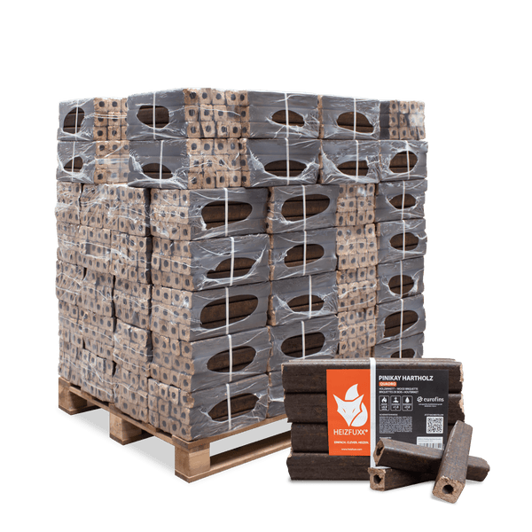 Die HEIZFUXX® PiniKay Hartholzbriketts überzeugen durch Form, Funktion und Umweltbewusstsein. Ihre charakteristische viereckige Form mit mittigem Zugloch sorgt für optimale Luftzirkulation, ein kraftvolles Flammenbild und schnelles Anheizen. Die hohe Energiedichte garantiert eine langanhaltende, gleichmäßige Wärme – ideal für Kaminofen, Feuerschale, Holzvergaser oder andere Festbrennstoffanlagen. Unsere Briketts bestehen zu 100 % aus naturbelassenen Hartholzspänen, gewonnen aus Sägewerksresten. In einem aufwendigen Pressverfahren wird das im Holz enthaltene Lignin aktiviert – es wirkt als natürlicher Binder und macht Klebstoffe überflüssig. So entsteht ein besonders festes, schadstofffreies Brikett mit minimaler Aschebildung und sauberem Abbrand. Die HEIZFUXX® PiniKay Briketts erfüllen höchste Qualitätsstandards in Bezug auf Reinheit, Heizwert und Nachhaltigkeit. Sie erhalten einen umweltfreundlichen Brennstoff aus unbehandeltem Holz – garantiert frei von Zusatzstoffen, Farben oder Lacken. Besonders gut eignen sich die Brennstäbe auch zur Nutzung in Feuerschalen. Dafür empfiehlt sich der Aufbau eines kleinen Turms aus mehreren Schichten – entzündet mit Anzündholz entsteht ein besonders angenehmes Flammenbild. Die PiniKay Briketts sind die richtige Wahl für alle, die nachhaltiges Heizen mit hoher Effizienz verbinden möchten.