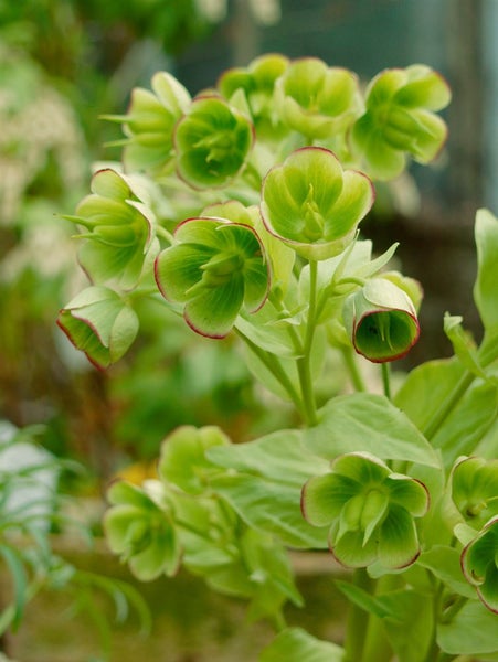 Helleborus foetidus ‘Wester Flisk’, die Stinkende Nieswurz, ist eine außergewöhnliche wintergrüne Staude, die mit elegant geschlitztem, blaugrünem Laub und rötlich getönten Stielen sofort ins Auge fällt. Ab dem Spätwinter bis in das zeitige Frühjahr erscheinen zahlreiche, nickende Glockenblüten in zartem Hellgrün mit purpurfarbenem Saum, die dem Blütenstaudenbeet in der blütenarmen Jahreszeit Struktur und Farbe verleihen. Der kompakte, aufrechte Wuchs bildet dichte Horste und eignet sich hervorragend als Zierstaude für Schatten- und Halbschattenbereiche, wo sie als Solitär im Vorgarten ebenso wirkt wie in der Gruppenpflanzung am Gehölzrand oder im naturnahen Schattenbeet. Auch als langlebige Kübelpflanze auf einer halbschattigen Terrasse bringt ‘Wester Flisk’ das ganze Jahr über attraktives Laub in Szene und ergänzt Ziersträucher, Gräser und andere Schattenstauden im Garten harmonisch.