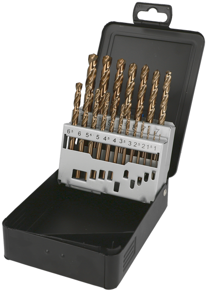 Heller Edelstahlbohrer HSS-Co 19 tlg. Set in Metallkassette 1 / 1,5 / 2 / 2,5 / 3 / 3,5 / 4 / 4,5 / 5 / 5,5 / 6 / 6,5 / 7 / 7,5 / 8 / 8,5 / 9 / 9,5 / 10 mm - 1 Set