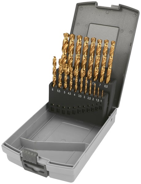 Heller Stahlbohrer HSS-TIN 19 tlg. Set Ø 1 / 1,5 / 2 / 2,5 / 3 / 3,5 / 4 / 4,5 / 5 / 5,5 / 6 / 6,5 / 7 / 7,5 / 8 / 8,5 / 9 / 9,5 / 10 mm - 1 Set