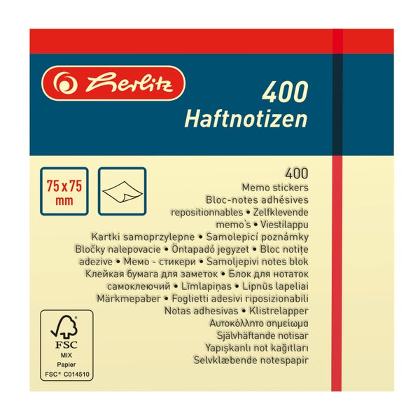 Herlitz Haftnotizblock 75x75mm 400 Blatt gelb