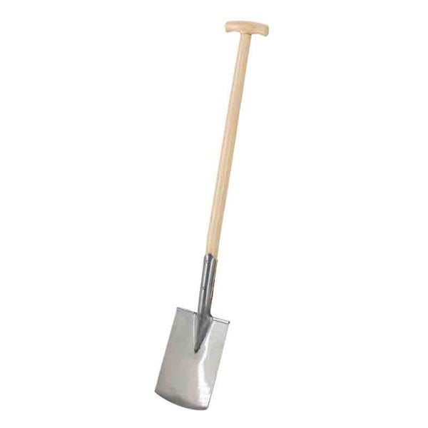 Polierter Doppelfederspaten mit T-Stiel aus Holz