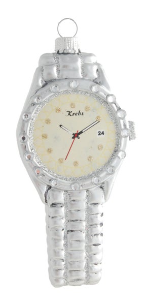 Herrenuhr in Silber 10,5cm, Glasornament, mundgeblasen und handekoriert, 1 Stck., Weihnachtsbaumkugeln, Christbaumschmuck, Weihnachtsbaumanhänger